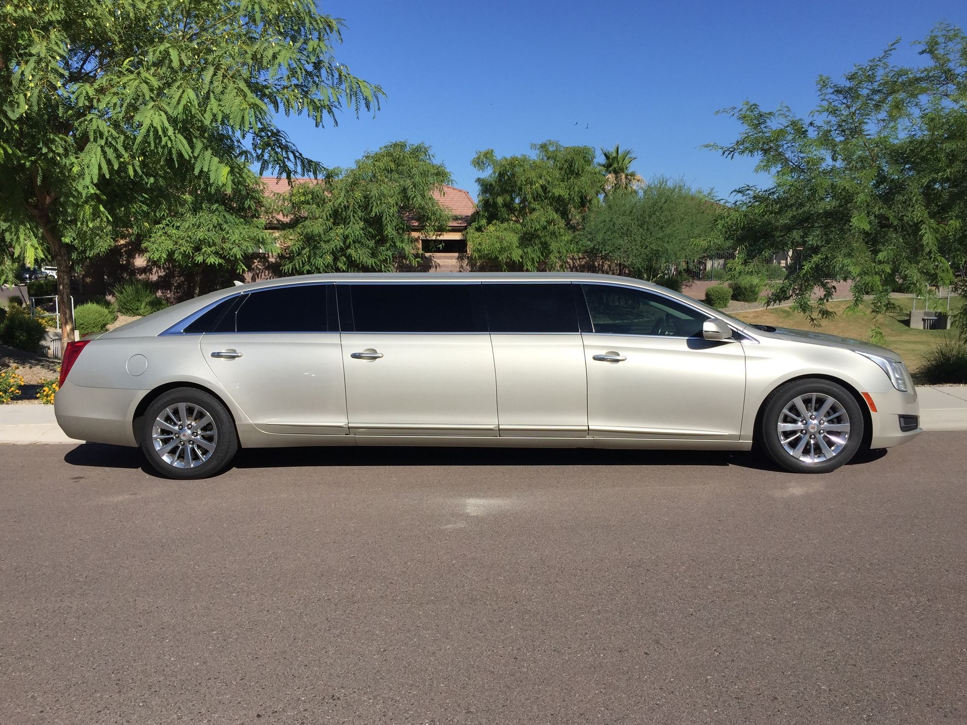 2014 Cadillac XTS-70 5th Door 6-Passenger Limousine. 305-hp, 3.6-liter V-6 (gasoline) engine, built by Royale. Gold Coast Metallic exterior, 69k miles, fleet owned, one owner, continuously maintained. Available at $44,900. Ships within 48 US states, at added cost. Can sell as a set or individually.